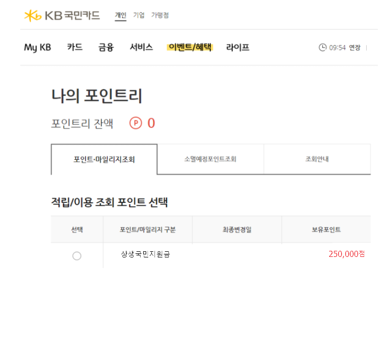 나의 포인트리 잔액 화면으로 이동되는데 그곳에서 국민카드 재난지원금신청 내역을 확인 가능해요.