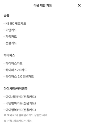 국민카드 국민지원금 이용에 제한이 되는 카드 종류가 있어요.