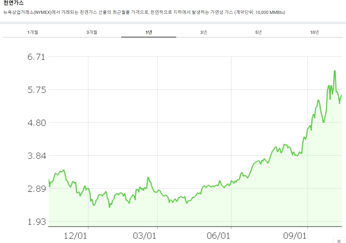 지난 8월말부터해서 천연가스 가격이 지속적으로 상승하는 움직임을 보이고 있는데 이에 따른 천연가스 주식들의 가격의 상승세가 이어지고 있는데요. 오늘은 천연가스 LNG 와 관련되어 있는 대성에너지에 대해서 알아보도록 하겠습니다.