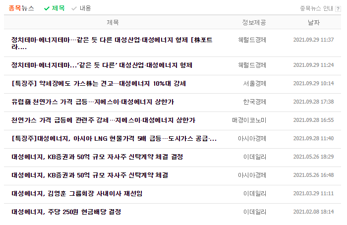 지난 8월말부터해서 천연가스 가격이 지속적으로 상승하는 움직임을 보이고 있는데 이에 따른 천연가스 주식들의 가격의 상승세가 이어지고 있는데요. 오늘은 천연가스 LNG 와 관련되어 있는 대성에너지에 대해서 알아보도록 하겠습니다.