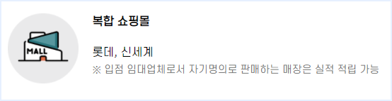 대형마트, 대형 백화점, 복합 쇼핑몰, 면세점, 대형 전자전문 판매점, 대형 종합 온라인몰, 홈쇼핑, 유흥 업종, 사행업종, 기타로 나뉩니다.