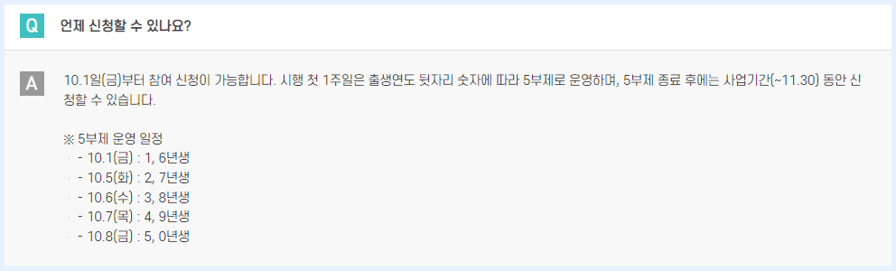 첫 1주가 지난 후에는 출생연도에 관계없이 11월 30일까지 아무 때나 상생소비지원금 신청하면 됩니다.