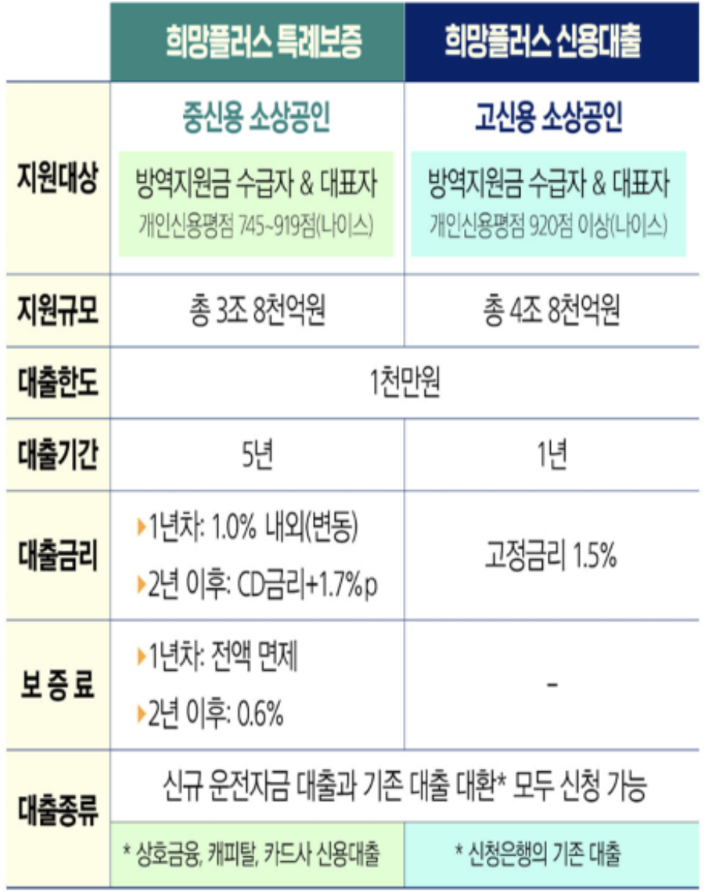 소상공인 희망대출 플러스 대상자