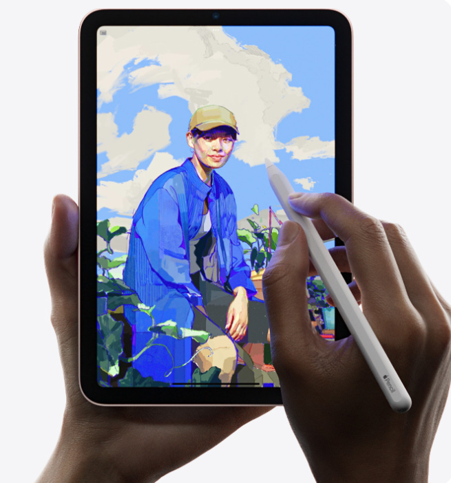 또한 2세대 애플 펜슬을 지원하며, 아이패드 미니 6에 펜슬이 자석으로 부착되어 충전 상태를 유지하고 손쉽게 사용 가능합니다.