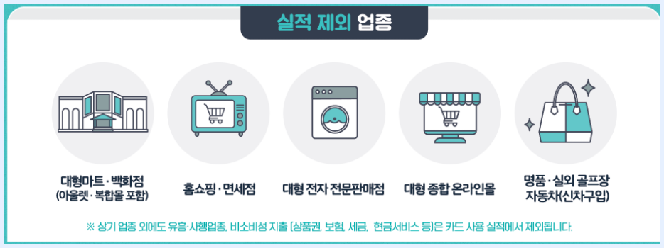 ※ 온, 오프라인 거래 모두 실적 적립에서 제외돼요.