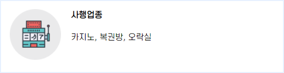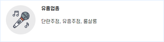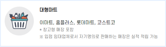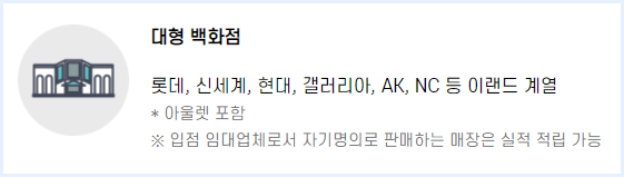 대형마트, 대형 백화점, 복합 쇼핑몰, 면세점, 대형 전자전문 판매점, 대형 종합 온라인몰, 홈쇼핑, 유흥 업종, 사행업종, 기타로 나뉩니다.