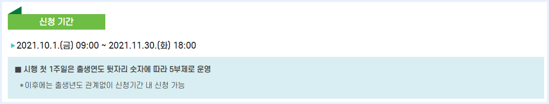 첫 1주가 지난 후에는 출생연도에 관계없이 11월 30일까지 아무 때나 상생소비지원금 신청하면 됩니다.