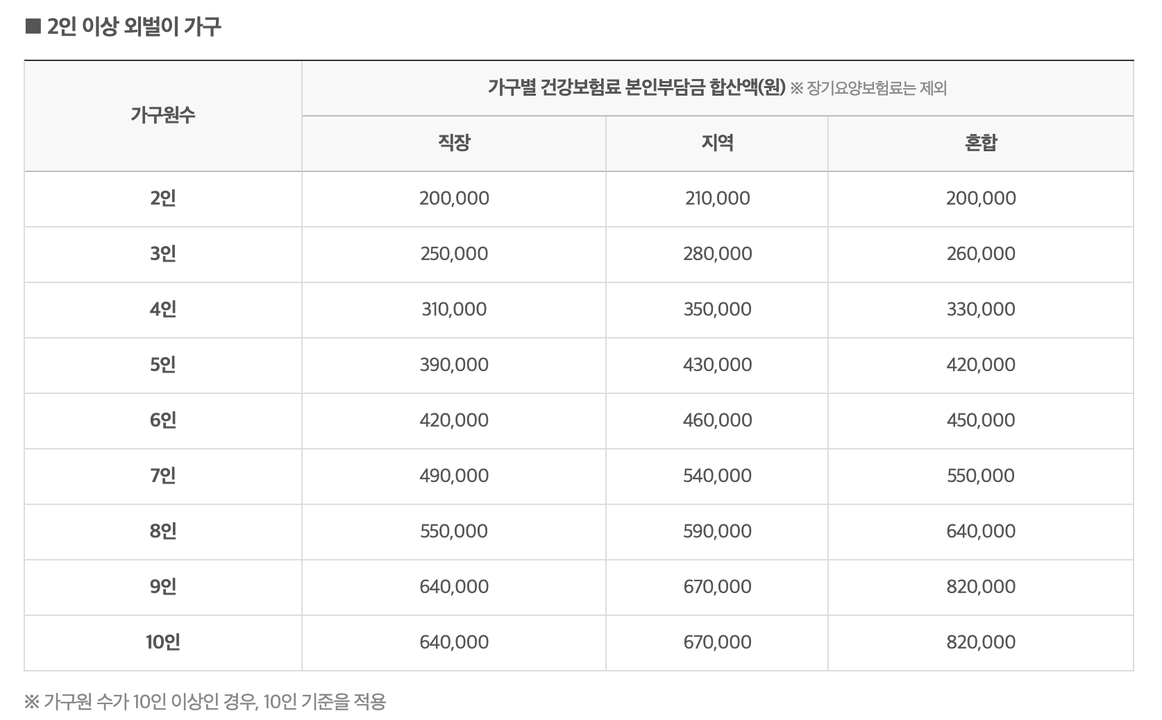 만약 가구에 건강보험 지역가입자와 직장가입자가 섞여 있다면 혼합 기준을 적용한다고 해요.